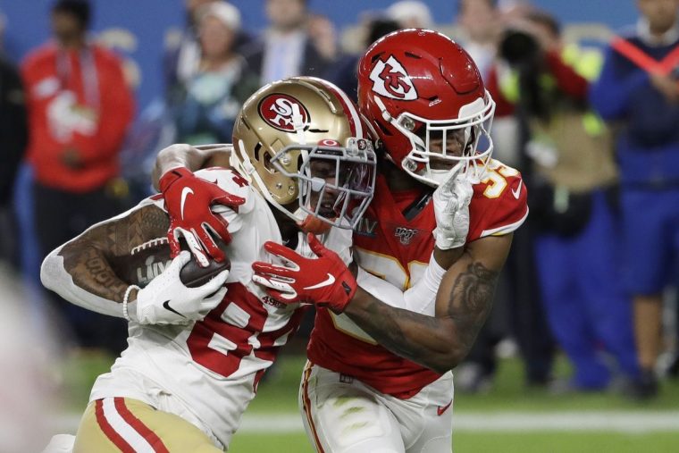 残り時間が少なくなる中、49ersは懸命にボールを前に進めようとするも、チーフス陣地に入ってパスが通らず、最後はガロポロがサックを受けて万事休す。チーフスはRBデイミエン・ウィリアムスの38ヤードタッチダウンランでリードを11点に広げ、ハードロック・スタジアムに詰めかけた多くのチーフスファンが勝利を確信する中、残り1分強となった試合を締めくくるべくフィールドのバトルに集中。最後まで攻めの姿勢を貫いた49ersはリスクを犯してビッグゲインを狙っていったが、インターセプトを食らってターンオーバーを喫し、試合のラストはチーフスが時間を使って終了の合図を待った。